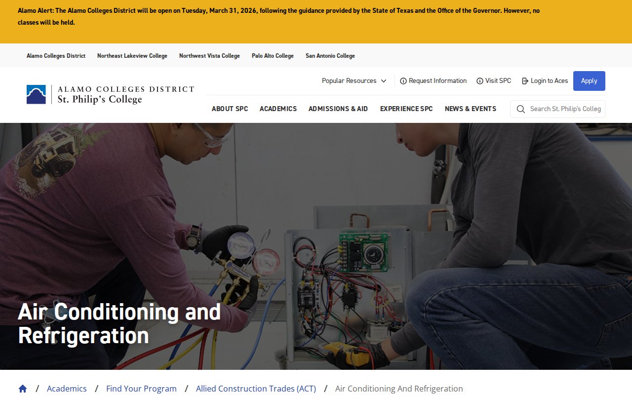 Alamo Colleges — San Antonio College — Heating, Ventilation, Air Conditioning and Refrigeration (HVACR)