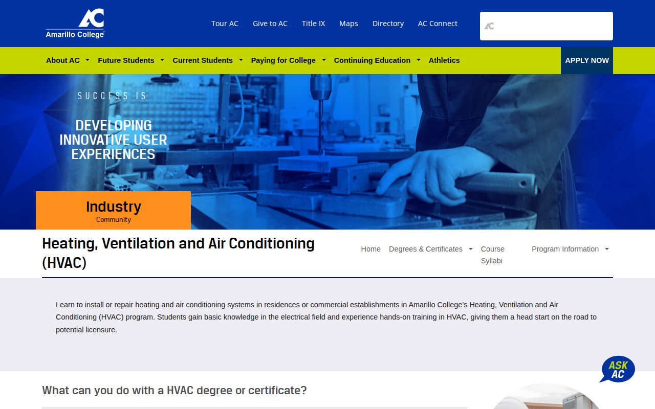 Amarillo College — Heating, Ventilation, Air Conditioning and Refrigeration (HVACR)