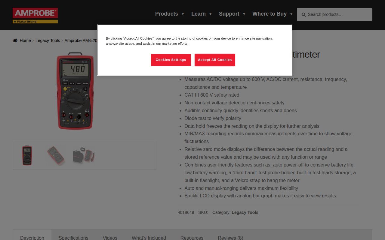 The Amprobe AM-520 is purpose-built for HVAC/R professionals with capacitance ranges from 40nF to 4000uF for testing motor start and run capacitors. Also measures AC/DC voltage, current, resistance, frequency, temperature, and microamps for flame rod testing. Features non-contact voltage detection and auto/manual ranging.