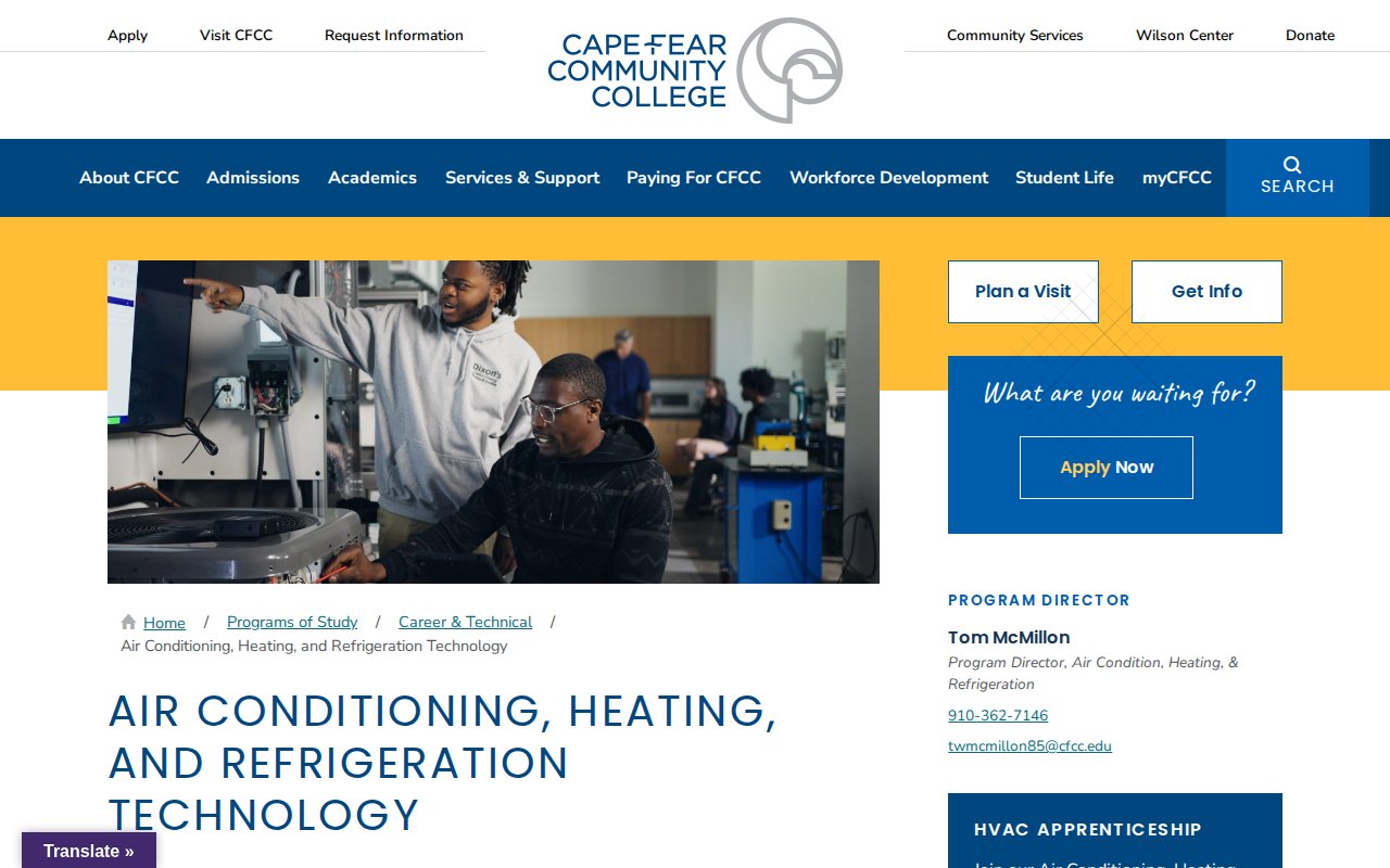 Cape Fear Community College — Air Conditioning, Heating, and Refrigeration Technology Certificate