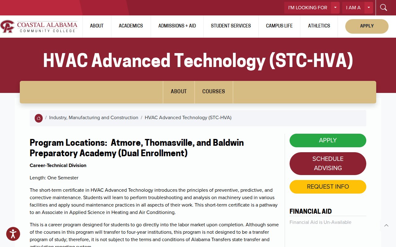 Coastal Alabama Community College — HVAC Advanced Technology - Short-Term Certificate - by Coastal Alabama Community College - Community College Programs software - logo 6.0 - Good