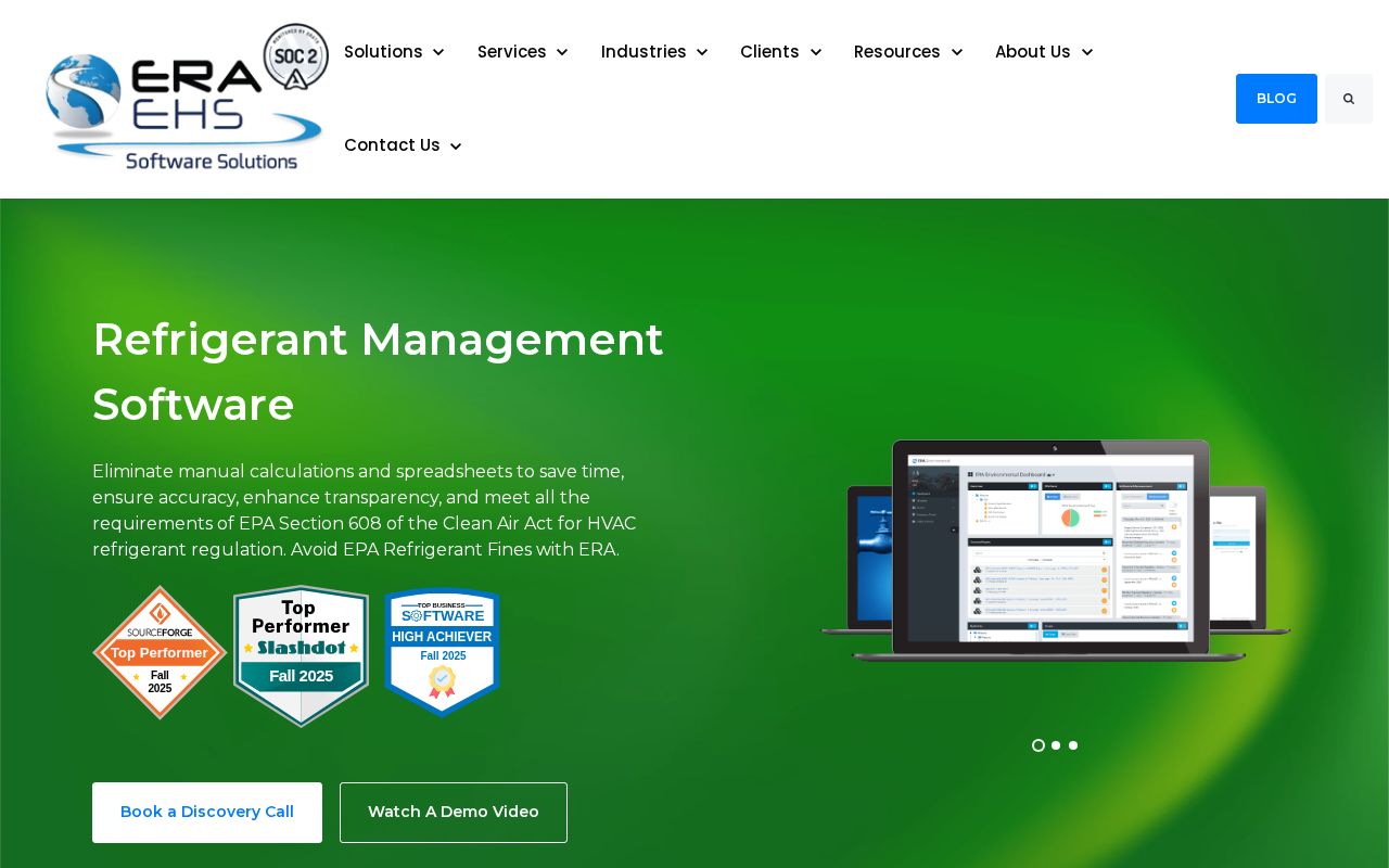 Enterprise-tier EHS compliance platform used by manufacturers and large organizations with significant refrigerant assets. Automates EPA leak rate calculations (both rolling-average and annualizing methods), stores audit-ready records, and generates detailed emissions reports. YouTube product demo from 2021 shows mature, established product. Better fit for large industrial/commercial operators than individual HVAC contractors.