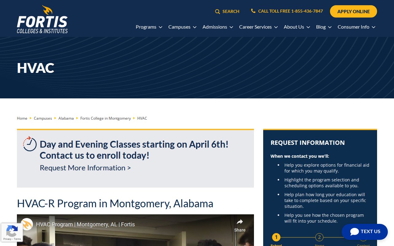 Credential: diploma. Format: in person. Curriculum: HVAC technician training, Service and repair of systems. Training for heating, ventilation and air conditioning systems that always need service and repair.