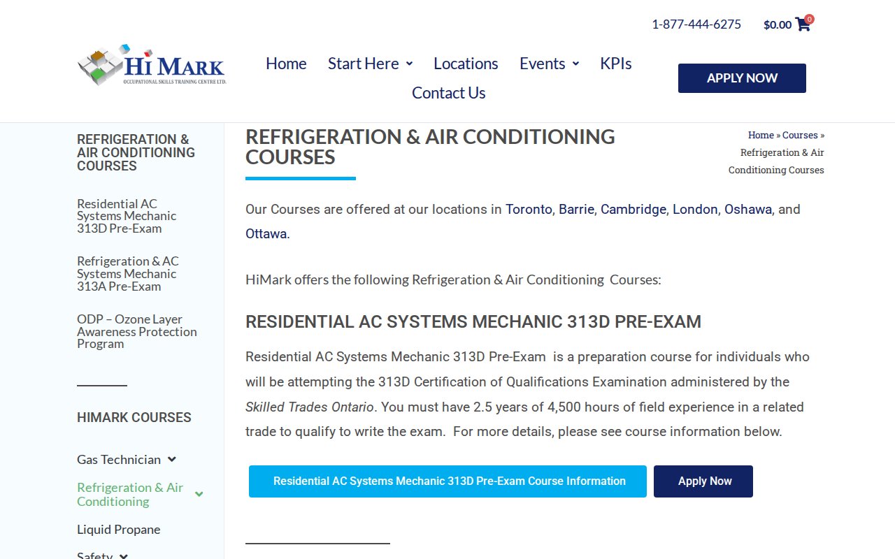 Credential: certificate. Format: in person. Curriculum: Refrigeration systems, Air conditioning, Practical training. Accreditation: TSSA approved. Canadian-owned company. Multiple Ontario locations. TSSA-registered provider