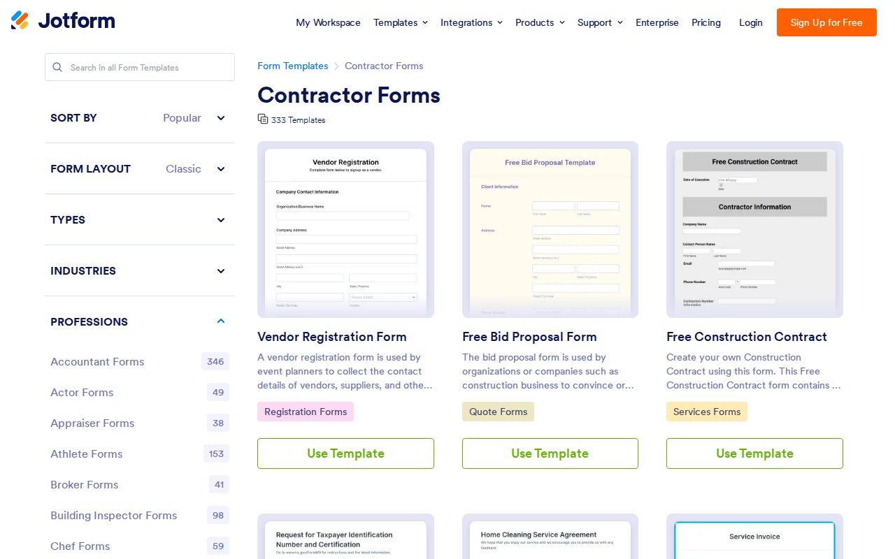 Online form builder with 300+ contractor templates for work orders, inspections, HVAC quotes, and digital signatures.
