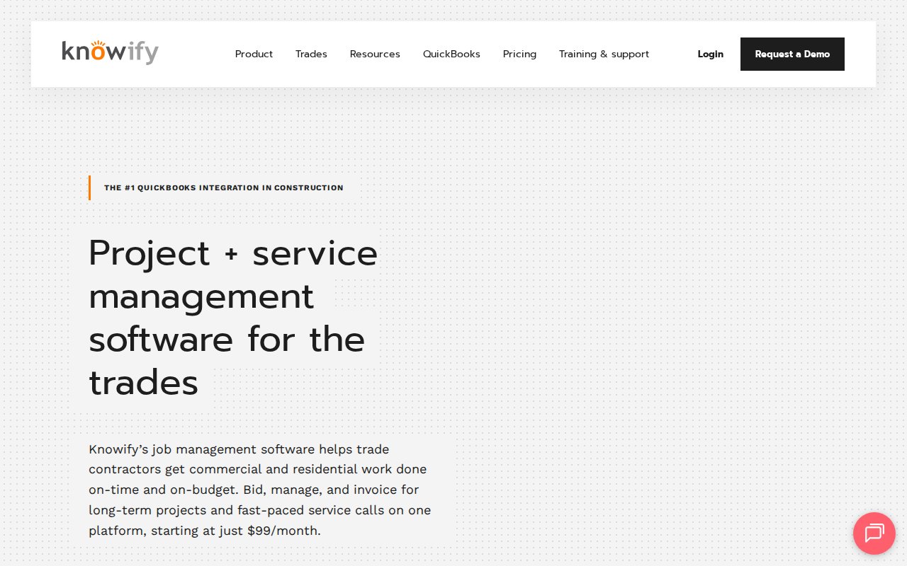 Knowify centralizes bids, proposals, change orders, scheduling, daily logs, and invoicing for HVAC, plumbing, and electrical contractors. Features real-time two-way QuickBooks Online sync, work-in-progress reports, job costing dashboards, and payment processing for teams of 10 to 200 employees.