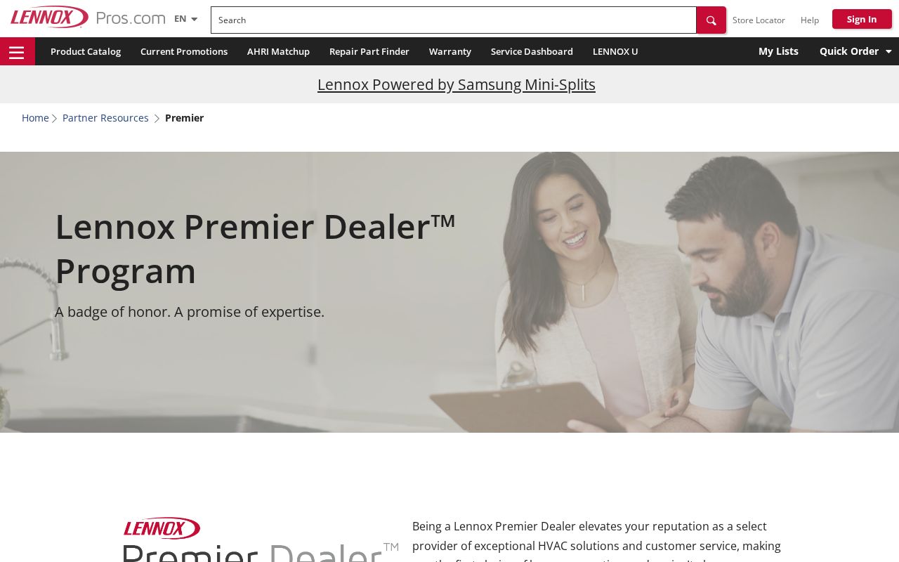 Lennox Learning Solutions has a 96% student satisfaction rating. Premier Dealer status provides stocking and financial discounts plus exclusive networking opportunities. The 2024 vendor co-op 'Grow With Confidence' program connects dealers with lead generation and marketing vendors. 400+ online videos and courses included at no cost.