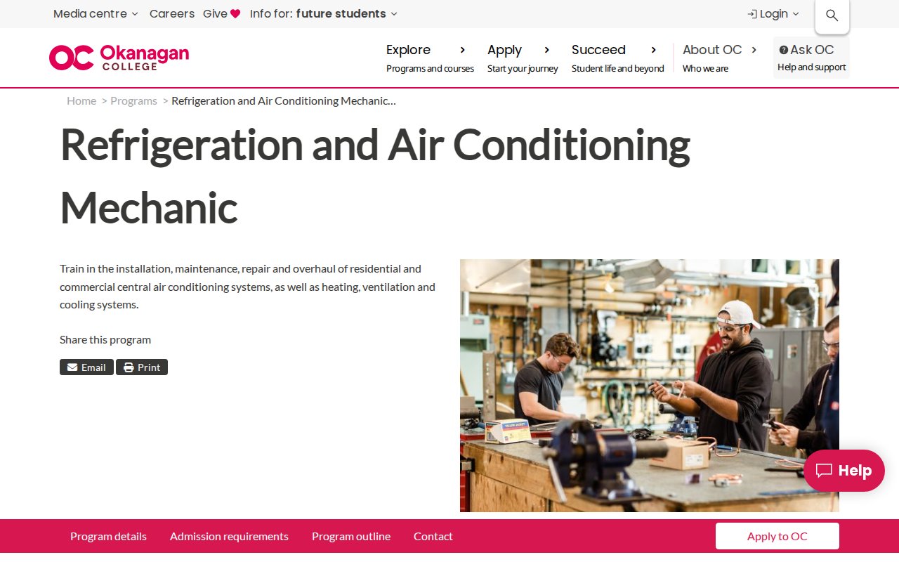 Okanagan College — Refrigeration and Air Conditioning Mechanic Pre-Apprenticeship - by Okanagan College - Community College Programs software - logo 5.8 - Good