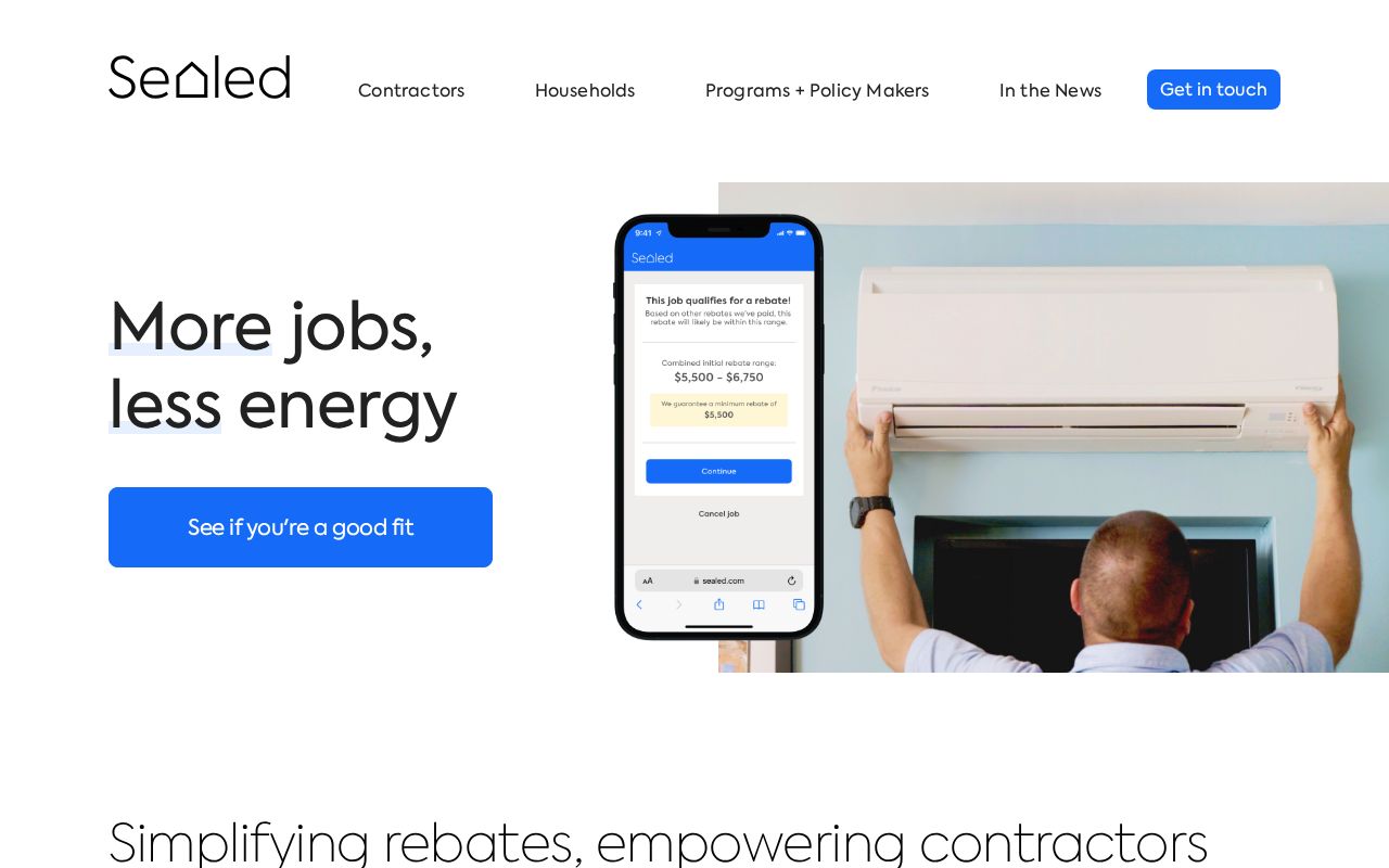 Contractor-facing rebate processing software that accelerates energy efficiency incentive paperwork and approvals. Launched in Southern California by Sealed (pivoted from consumer home services), focused on eliminating the most common contractor pain point in the rebate process.