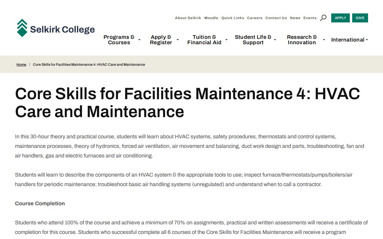 Selkirk College — HVAC Care and Maintenance