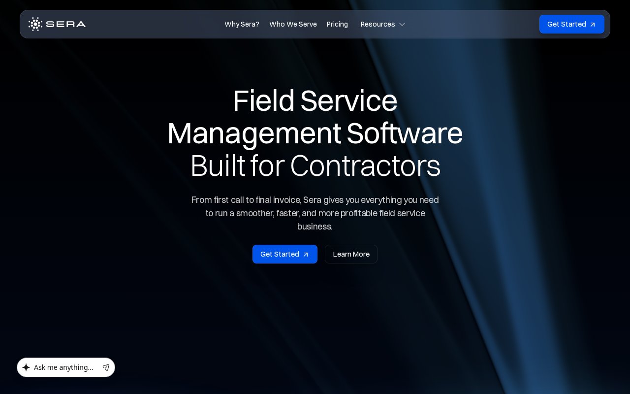 Sera Systems provides a field service management platform with over 100 live KPI dashboards tracking average ticket price, job closing percentages, service plan conversions, and technician efficiency in real-time. Built specifically for residential HVAC, plumbing, and electrical contractors, it enables membership-driven quoting and margin pricing with per-technician-based pricing.