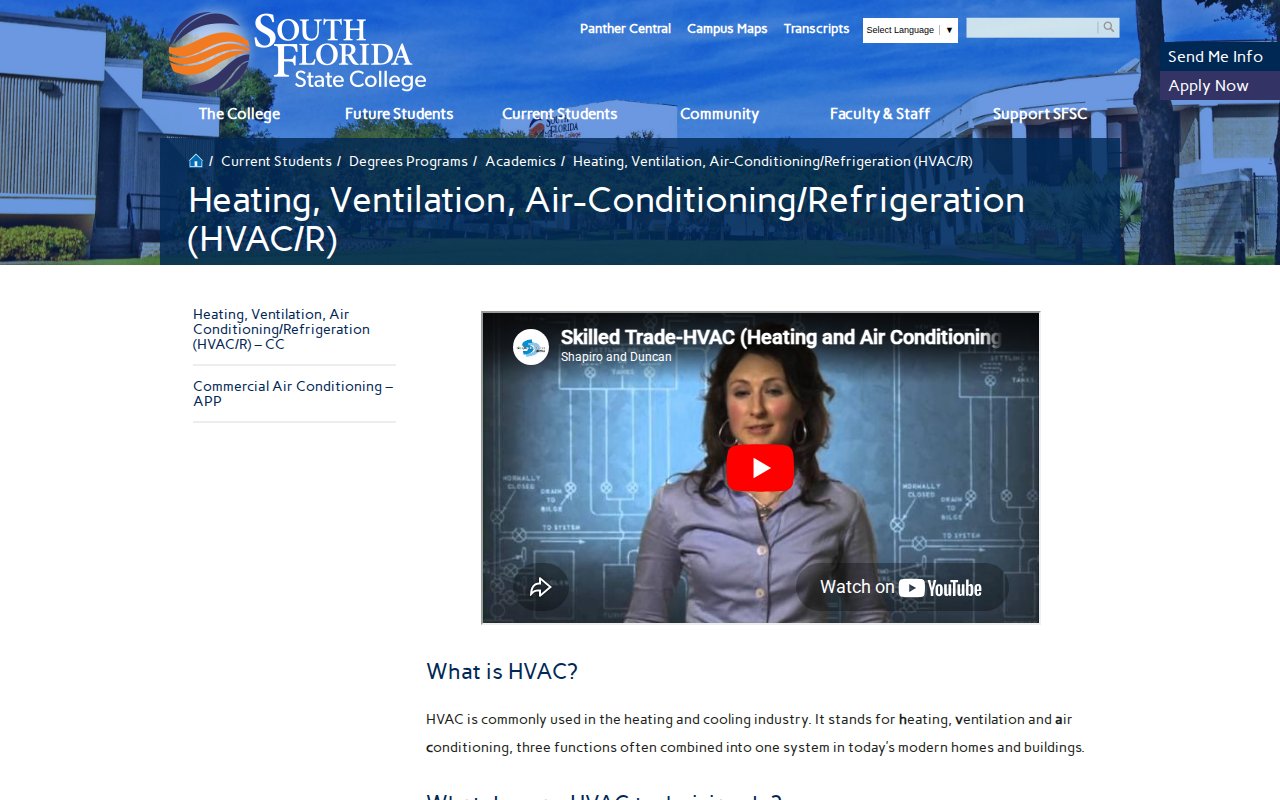 South Florida State College — Heating, Ventilation, Air-Conditioning/Refrigeration (HVAC/R) Certificate Program