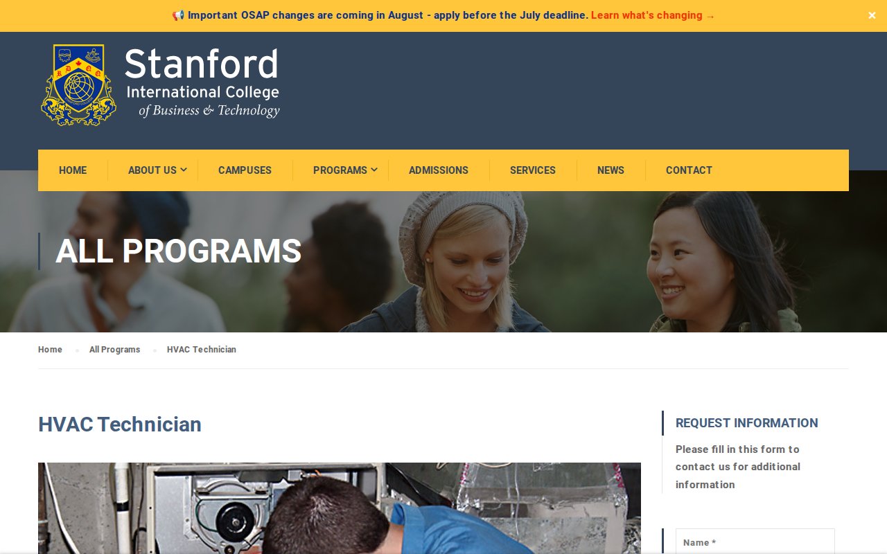 Stanford International College — HVAC Technician