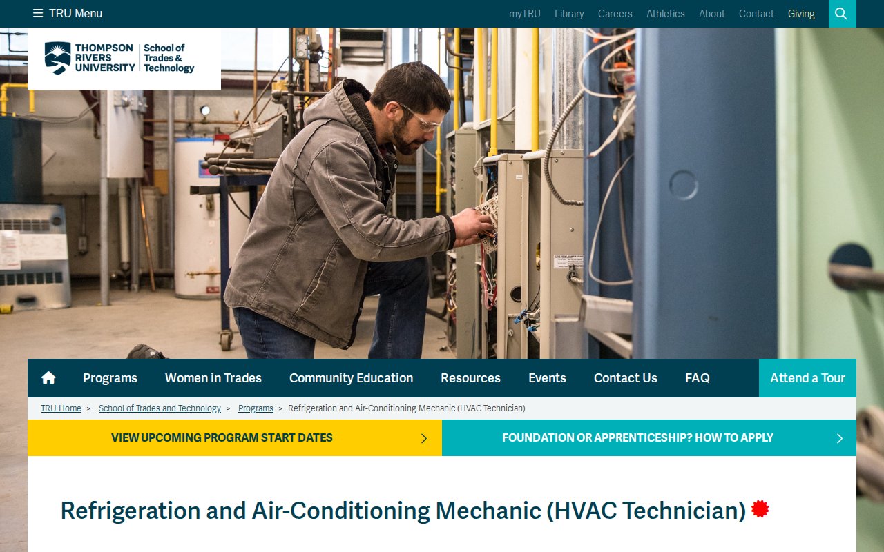 Thompson Rivers University (TRU) — Refrigeration Mechanic Apprenticeship Levels 2-4 - by Thompson Rivers University (TRU) - Community College Programs software - logo 6.2 - Good
