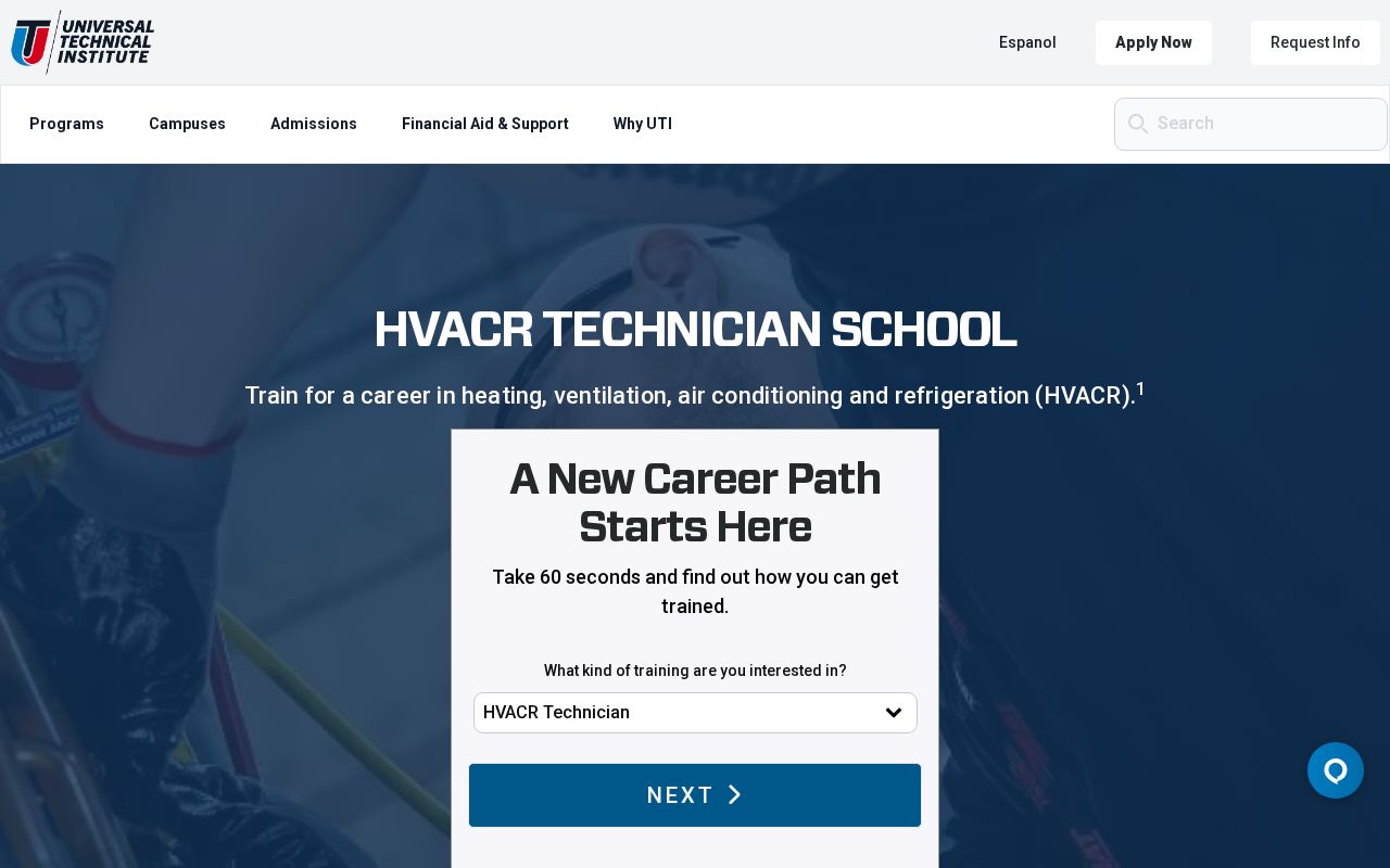 UTI launched HVACR as part of its 'North Star Strategy,' adding 8 campus programs in 2025 alone. Campuses in AZ, CA, FL, MI, NJ, NC, TX with Atlanta and San Antonio planned for 2026. Enrollment is open and classes start on rolling basis.