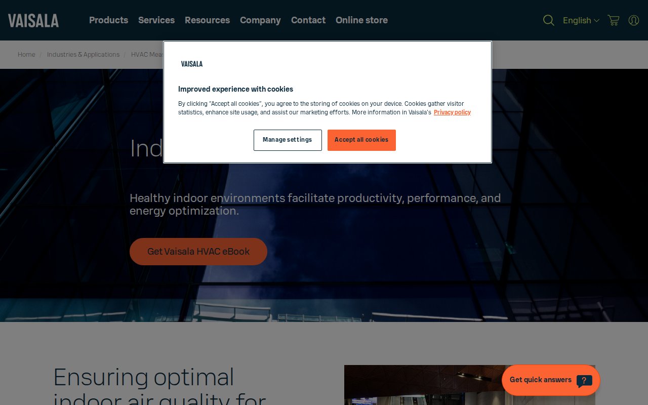 Vaisala provides industrial-grade IAQ sensors and transmitters for HVAC applications including CARBOCAP CO2 transmitters, relative humidity sensors, and temperature probes. Available in duct-mounted and wall-mounted configurations, these sensors monitor specific parameters needed for demand-controlled ventilation, building commissioning, and ongoing IAQ compliance in commercial facilities.