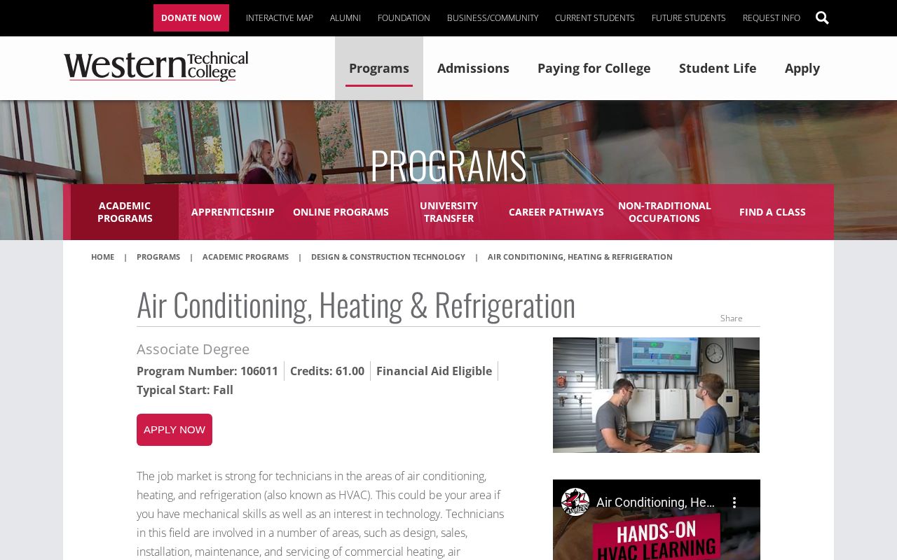Western Technical College Air Conditioning, Heating & Refrigeration